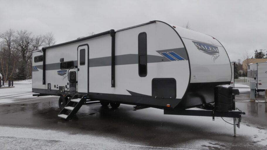 Enjoy years and years of memories with any one of these Forest River Salem travel trailers! They are built with a one piece, SuperFlex roof, a powder coated I-beam frame, and an aerodynamic front radius profile for an easier tow. The triple seal slide out system prevents water from seeping inside and keeps it outside where it belongs. The Salem Best In Class Value Package includes upgraded designer furniture, seamless countertops with no T-mold, and two zone residential soundbars with FM, Bluetooth, HDMI and USB. You will also appreciate the heated and enclosed Accessi-Belly with removable underbelly panels, the power tongue jack with an LED light, the designated CPAP storage. Some new upgraded features include: kitchen backsplash, fireplaces with mirror fronts, bedroom bedding, 12V refrigerator, now with glass doors, and so much more!