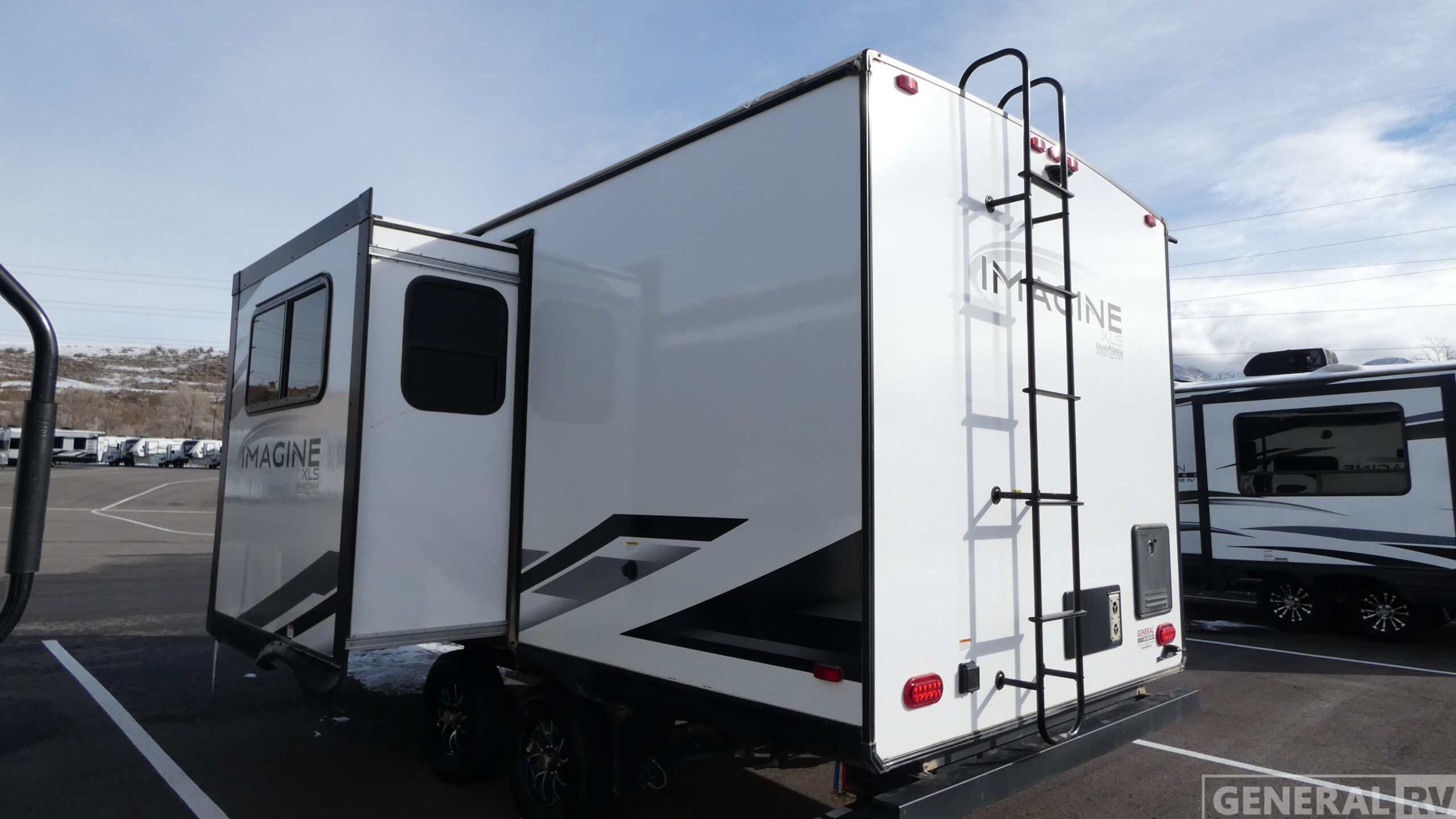 Let your imagination run wild with the possibilities that the Grand Design Imagine XLS travel trailer can provide! The Imagine XLS has been built with oversized tank capacities, an extra-large 2" fresh water drain valve, a ducted A/C system, a power tongue jack, and a heated and enclosed underbelly with suspended tanks. There is a designated heat duct to the subfloor and a residential ductless heating system throughout. For outdoor adventures, the electric awning with LED lights will enable you to stay protected, and the exterior speakers make any time outside a party. You will also love the XLS Solar Package that comes with a 165W roof mounted solar panel, a 25 Amp charge controller, a 12V 10 cu. ft. refrigerator, and roof mounted quick connect plugs!