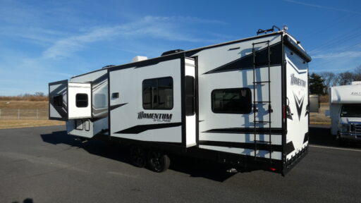 Are you looking for adventure and fun? The Momentum G-Class toy hauler by Grand Design will help you find it! You can explore during any season you choose with the Insulation Package that includes a heated and enclosed underbelly with suspended tanks, a high-capacity furnace, a moisture barrier floor enclosure, and cabinet-mounted heat ducts. Each model includes a 30-gallon fuel station with an interior and exterior gauge, a dovetail rear rend, and 2,500-LB tie-downs anchored into the chassis. Throughout the Momentum G-Class interior, you'll enjoy many comfortable features like large panoramic windows, a shower skylight, USB chargers in the bedroom, and residential cabinetry.