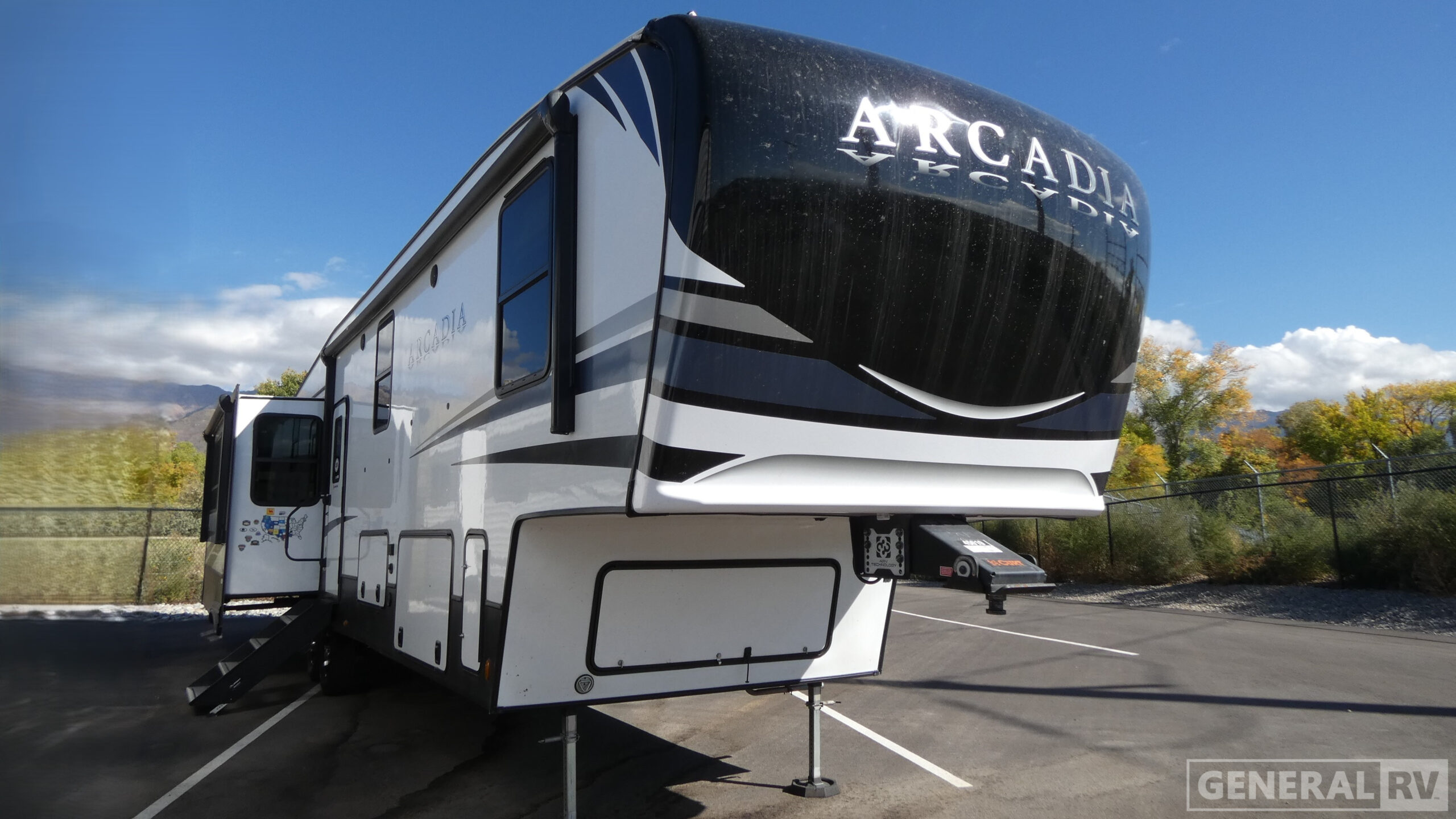 Each Arcadia 3/4 ton fifth wheel by Keystone includes a Revolutionary NGC2 Next Generation crawlspace chassis, a SpaceSaver upper deck design, and a Curt equalization suspension system for a smooth towing experience. You will find abundant storage space throughout, residential Roman shades with black-out backing, designer vinyl flooring throughout, and custom cabinetry with solid wood and painted cabinet doors. Each model includes the exclusive Blade Pure high-performance air handling system for increased A/C airflow, along with a 35K BTU high output furnace so you can camp all year long. The Arcadia is constructed with fully laminated, aluminum framed one-piece sidewalls, a high-gloss fiberglass exterior, plus a fiberglass front cap with KeyShield protection to keep your fifth wheel looking sleek for years to come.