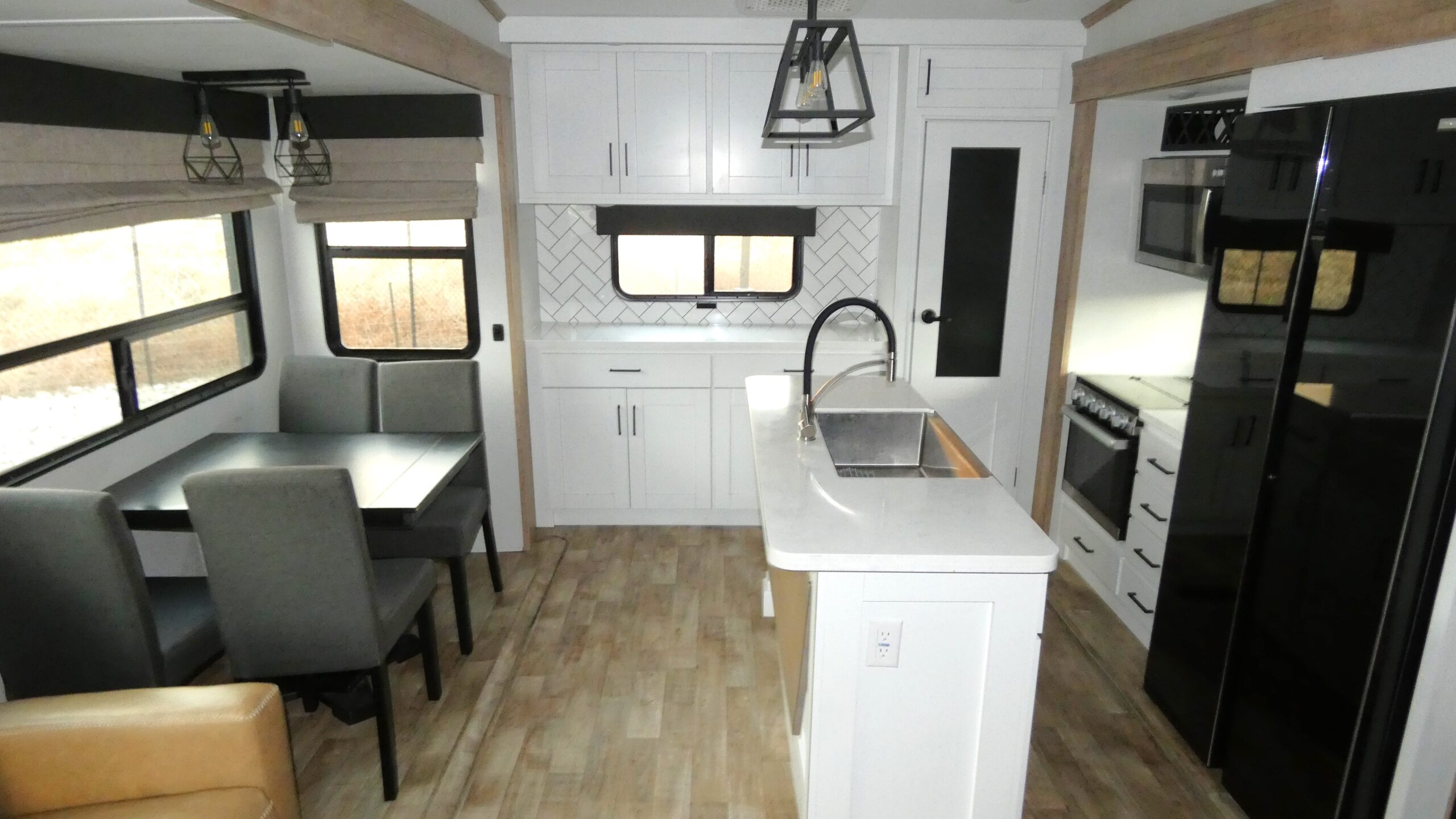 Camping trips can be spent in luxury with this fifth wheel in tow! There are four slide outs providing you with tons of interior space, and the middle bedroom will be perfect for guests. There is a sleeper sofa here, a desk top, plus a wardrobe for their things, and the loft will be perfect for little ones or storage space. You will have the front private bedroom all to yourselves with a California king bed slide out, plus a walk-in closet with wrap-around shelving. There is even under bed storage and washer and dryer prep to make laundry day easier than ever. Everyone can meet in the rear kitchen and living area that includes theater seating, a free-standing dinette, and an island with a flip-up counter workstation. There is also a large hutch here and a pantry for added storage space. And we haven't even touched on the exterior; Curt entry steps, a 20' power awning, plus a Grill-N-Chill outside kitchen!