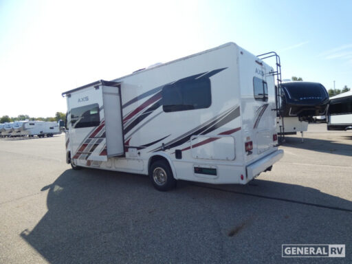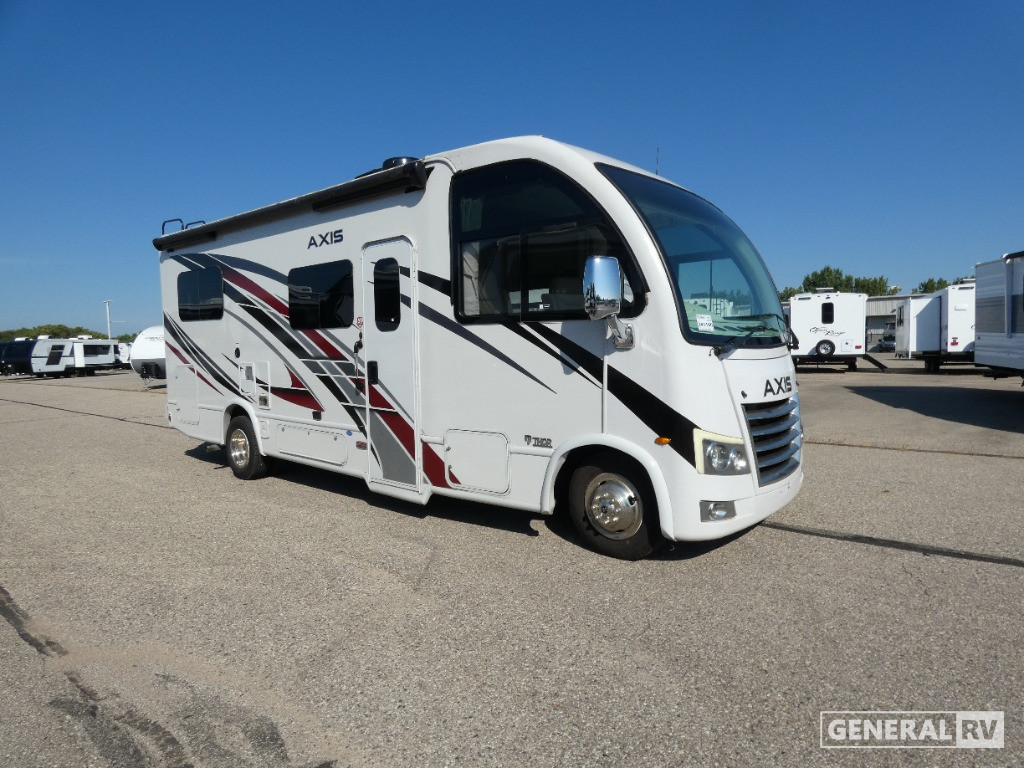 The Axis 24.1 is built on a robust Ford E350 chassis, powered by a Triton V8 engine that delivers 325 horsepower and 450 lb-ft of torque, ensuring a smooth ride wherever your travels take you. With a length of just over 25 feet, this RV is easy to maneuver while still offering a full suite of amenities, including a mid-size refrigerator, convection cooking, and a 17 ft. powered retractable awning for outdoor enjoyment. Whether you're parked at a campsite or on the move, the Axis 24.1 provides the perfect blend of luxury and practicality. For more details and to experience this RV in person, visit your nearest General RV dealership.