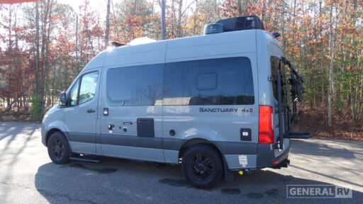 The Sanctuary 19P is designed for relaxation and convenience with swivel captain’s chairs and a fold-out electric sleeping area that comfortably accommodates two. The center bath with a shower curtain ensures privacy, while the powered retractable awning invites you to enjoy the outdoors at your leisure. Whether you're embarking on a weekend getaway or an extended road trip, the Thor Sanctuary 19P offers all the essentials for a memorable journey. For more details and to experience it firsthand, visit your nearest General RV dealership.