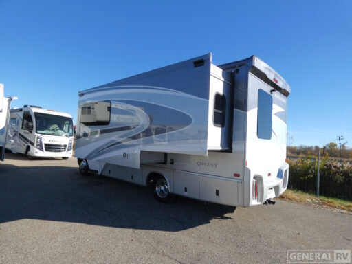 The Entegra Coach Qwest Class C diesel motorhome is built upon a premium Mercedes-Benz 3500 chassis with a 2L V4 twin turbo 211HP diesel engineto power your trips near and far. Each model is constructed with TuffShell vacuum-bond laminated sidewalls, premium Sikkens full-body paint, and bead-foam insulation so you can travel year around. Navigate like a pro with the 10.25 inch integrated Mercedes-Benz infotainment center with GPS, and you are sure to stay comfortable in the leatherette captain's seats. Some of the interior comforts you will enjoy with the Qwest are the Tecnoform high-gloss countertops, the large bedroom wardrobes, and the day/night roller shades. And we didn't even mention the convenient exterior features, like the Girard armless awning with LED lights, the outside shower, and the exterior utility center.