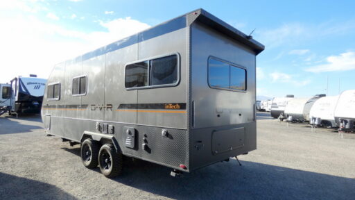 The O-R-V travel trailers and toy hauler by inTech RV allow you to experience adventure off the beaten path with its rugged exterior and lightweight construction provided by the all-aluminum fully welded cage frame. The power tongue jack will make setting up camp a breeze, plus there is a fold-away double entry step and exterior lighting for added convenience. Inside, you'll find a large farmhouse style sink, a MaxxAir vent for ventilation, plus infinity woven flooring. There is a Bluetooth stereo with four speakers and a 32" Smart TV included with each model, plus USB and 110V outlets to keep your electronics charged and ready to go. Further customize your O-V-R by adding the optional power awning or the optional Off-Grid Package with 400 watts of solar power, 20 amp hours of lithium batteries, and a 2,000 watt inverter!