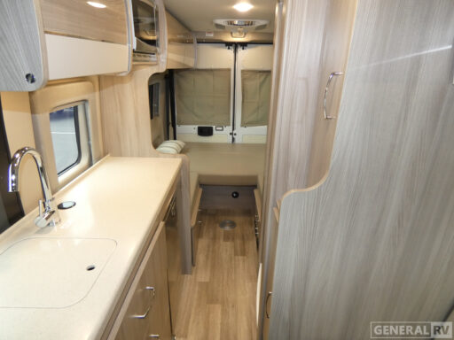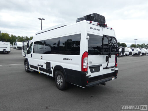 The Sequence 20J boasts thoughtful amenities, including a 16-foot powered retractable awning, perfect for creating a shaded outdoor living space. The swivel chairs in the front provide a comfortable spot for dining or lounging, with a removable table on a swing arm adding to the convenience. The center bath with a shower curtain offers practicality, while the ample storage solutions ensure you have everything you need for your journey. With a robust Pentastar VVT V6 engine and a ProMaster 3500 chassis, this RV is ready to take you wherever the road leads. For more details, visit your nearest General RV dealership and discover how the Sequence 20J can be your perfect travel companion.