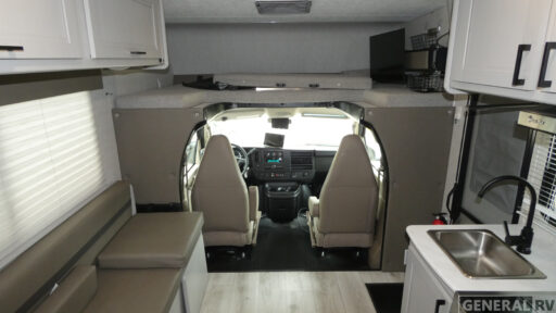 With any Freelander SS Class C gas motorhome by Coachmen, you will find a quality constructed coach for all your journeys. There is AlphaPly TPO seamless one-piece roof material and a max-length power awning with an LED light strip so you can enjoy evenings outdoors. You will also find a molded fiberglass front cap, a rotocast rear warehouse storage compartment, and an upgraded exterior safety grab handle. The mandatory SS Package includes a tankless water heater, running boards, and a towing hitch for your hauling needs. Head inside to enjoy the premium one-piece Thermofoil countertops and vinyl flooring, brushed nickle hardware, pleated night shades, and many more comforts.