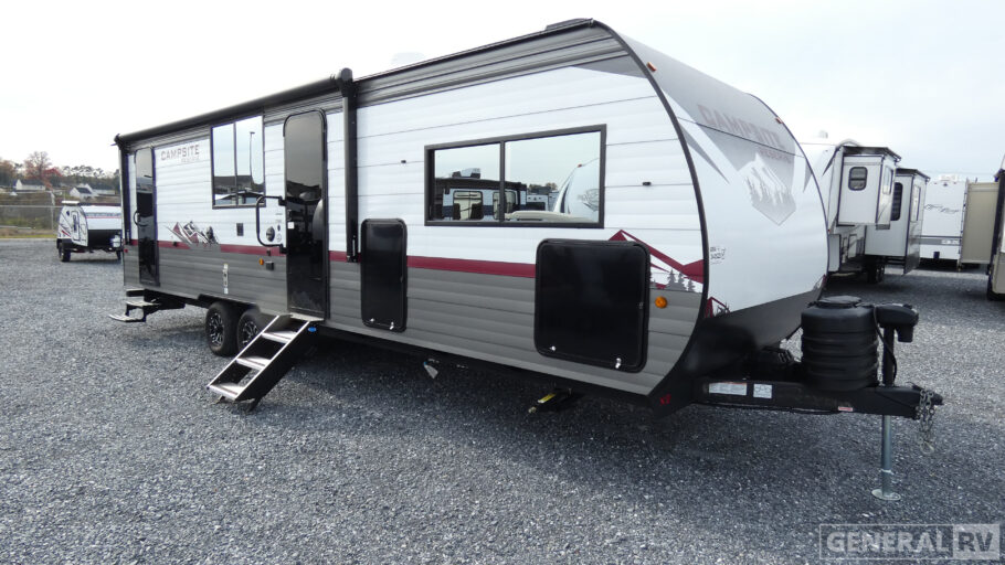 With any Campsite Reserve travel trailer by Forest River, you will enjoy comfort and convenience at every turn! They are built with a diamond plate front, max size square windows, and a one-piece PVC roof for added durability. The mega pass-thru storage will allow you to store camp gear, and the outside shower will come in handy when rinsing off your hiking boots. There are also NextGen stabilizer jacks and stable steps for added stability. Inside, you'll find convenient storage throughout, full bath and kitchen amenities, plus cozy seating and sleeping spaces to name a few comforts!