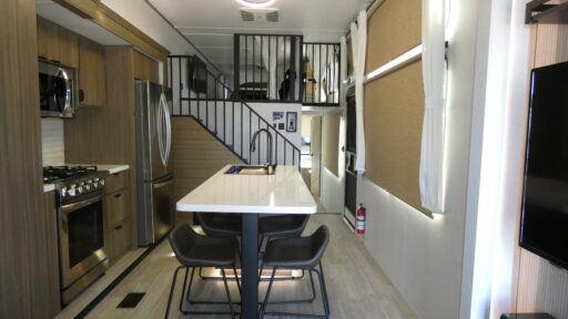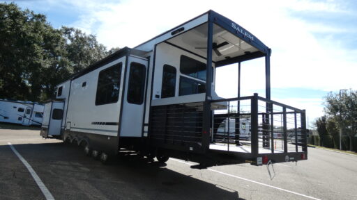 What truly sets the 42VERANDA apart is its rear covered veranda, creating a seamless blend of indoor and outdoor living. This inviting space is perfect for relaxing, entertaining, or cooking outdoors, and pairs perfectly with the included outdoor kitchen. Built for seasonal use, the Grand Villa includes a heated and enclosed underbelly, tankless water heater, residential-style finishes, and multiple entry doors for convenience. Whether used as a vacation getaway or a seasonal home, the Salem Grand Villa 42VERANDA delivers comfort, space, and lifestyle-focused design in a destination-ready package.