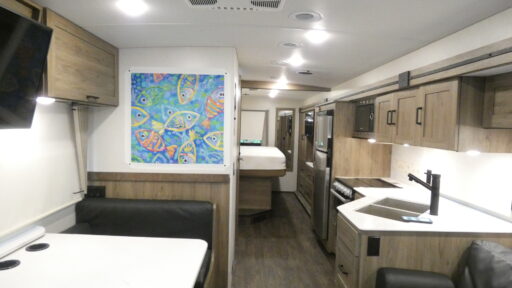 The Winnebago Vista National Park Foundation Limited Edition Class A gas motorhome is designed to fit almost any campsite! You can go off the grid with the upgraded solar energy system which has a standard 320 amp hour lithium-ion battery, a charge controller, and three solar panels for three times the unplugged power. The Batwing awning overlaps the standard armless patio awning for two sides of seamless wraparound protection to enhance your outdoor living. Speaking of enhanced outdoor living, the exterior kitchen included in the Tailgate package comes with a refrigerator, a sink, and a quick connect LP hose for a portable stove or grill, plus more convenient accessories. The outdoors are brought inside through the frameless tinted windows and the beautiful Salinas oak cabinets. Come check it out today!