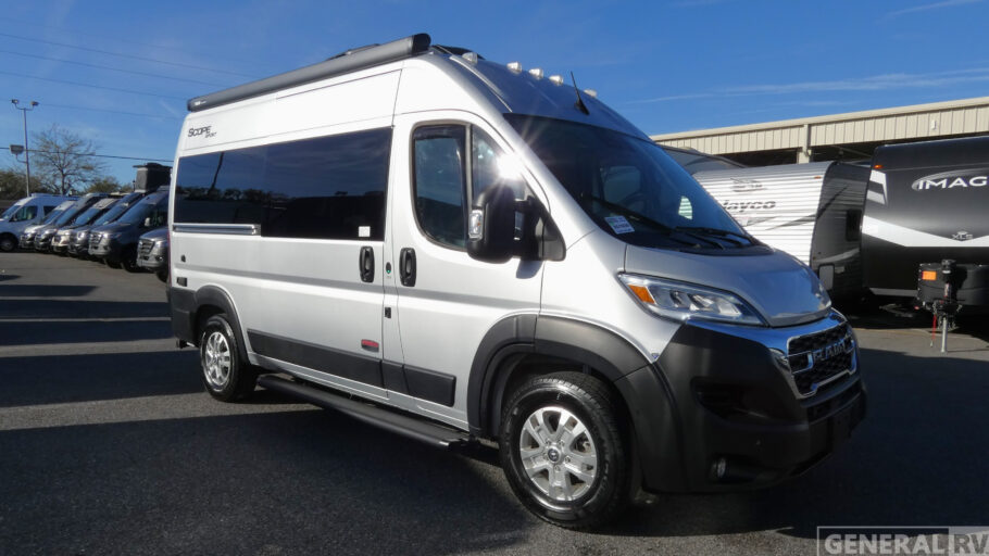 Each one of these Thor Motor Coach Scope Sport Class B gas motorhomes are built for those who want to explore the great outdoors in comfort! They are front wheel drive and constructed with a RAM Promaster 1500 XT chassis, plus a 5,000 lb. trailer hitch with 4-pin connector so you can haul even more items with you. The side steps make it easier to enter and exit the units, and the entryway screen door is an added bonus. The Sport Edition features patio awning prep, blackout zipper window shades, pressed countertops, slab style cabinet doors, and more convenient amenities. And you're sure to stay powered up by the 1000-watt inverter, 2800 gas generator, and 30-amp detachable shoreline power cord!
