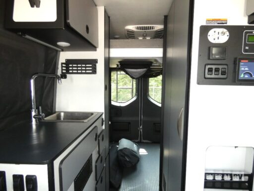 Adventure is just around the corner with this camper van! Once you arrive at your destination, you can make a quick lunch on the single induction cooktop that is stored in a drawer so you can have more counter space when you need it, plus there is a pantry for snacks. There are also swivel cab seats and a side-facing lounge seat with an adjustable table where you can relax and dine together. An all-in-one gear closet and wet bath will let you freshen up when you return, and the power lift bed with a gear garage below will provide a great night's rest.