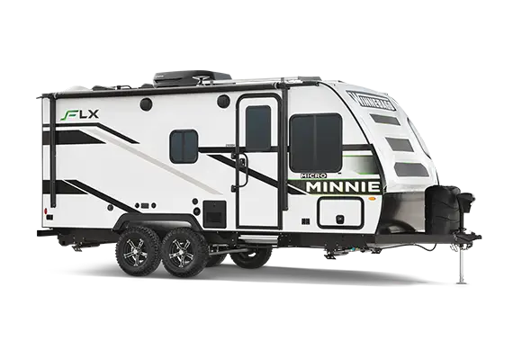 ## Winnebago Industries Towables Micro Minnie FLX travel trailer 2100BH highlights - Bunk Beds - Dinette Slide - 54" x 74" Bed - LED TV Join the crew of happy campers who are getting away in this Micro Minnie FLX travel trailer! You will be able to store your favorite belongings in the exterior Pack-N-Play storage, and you can also fill up the 10.3-cubic foot refrigerator with fresh produce. The kitchen includes a recessed three-burner cooktop with backlit knobs and glass cover as well as a convection microwave, so you'll never go hungry. There is even a flip-up countertop in the kitchen too, and it can be used when you need more space to prep meals. The front 54" x 74" bed can be sectioned off from the rest of the trailer by drawing the divider curtain. Every inch of the Winnebago Industries Towables Micro Minnie FLX travel trailer is worth checking out! These trailers are built with an NXG engineered frame, exterior fiberglass sidewalls with Azdel, Goodyear Wrangler radial tires, Torflex Dexter axles, a one-piece TPO roof membrane, a 15" off-road tire/axle lift, and power stabilizing jacks. You'll be grateful to find exterior speakers and a 2" accessory hitch receiver included. Some of the excellent technological amenities include a wireless cell phone charger, an all-in-one control panel, preparations for Wi-Fi, USB charging ports, and aJBL Aura Cube- high performance Mechless media center with parametric lighting.You'll also appreciate the fantastic electrical features, like the two 190W solar panels, the 320AH UL lithium battery, TV antenna, and 3,000W inverter.
