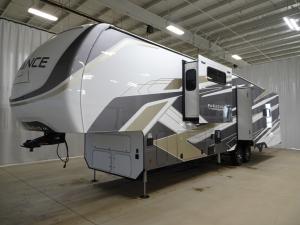 Experience the epitome of luxury and comfort with the 2021 Alliance RV Paradigm 370FB. Designed for those who crave a home-like feel on the road, this RV offers a spacious and elegant living area complete with a 50" class smart TV and a cozy fireplace, perfect for unwinding after a day of adventure. The rear living space is thoughtfully designed with dual recliner love seats and a floating dinette table, providing a perfect blend of relaxation and dining elegance. The kitchen is a chef's dream, featuring a full-size refrigerator, four-burner cooktop, and dishwasher prep, ensuring you have all the conveniences of home while exploring the great outdoors. The front bath layout offers a sanctuary of privacy and luxury with a walk-in closet and washer/dryer prep, making it easy to keep everything organized and fresh. The master bedroom boasts a king-size bed option, promising restful nights under the stars. With a generous 98-gallon fresh water capacity and powered retractable awnings, this RV is perfectly equipped for extended stays. The Paradigm 370FB combines modern amenities with thoughtful design, ensuring every journey is as comfortable as it is memorable. For more details, visit your nearest General RV dealership.