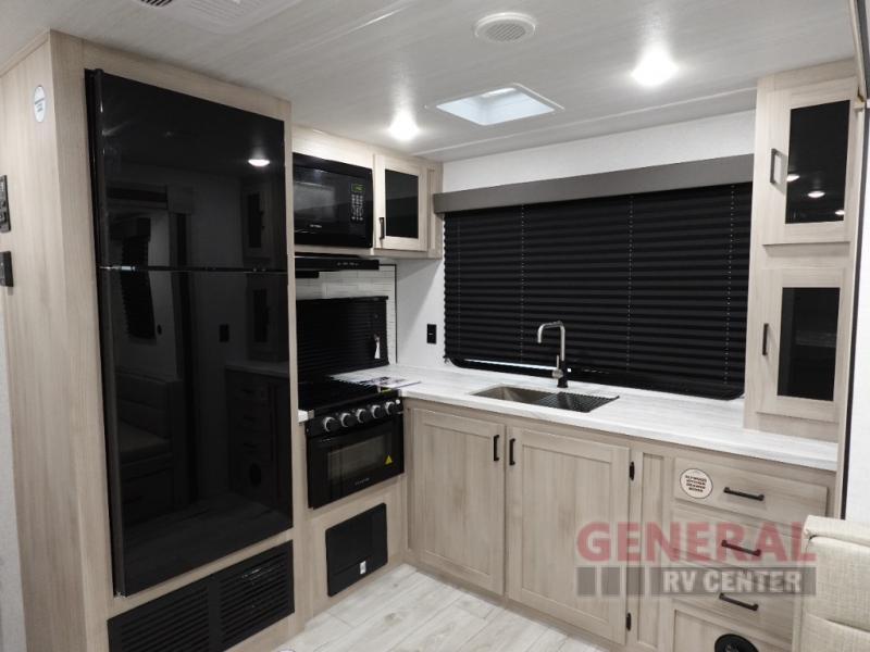 Experience the perfect blend of comfort and style with the 2025 EAST TO WEST Della Terra 263RK. This travel trailer is designed for those who cherish both adventure and relaxation. Imagine unwinding in the spacious center living area, where a cozy jiffy sofa and booth dinette await, perfect for family gatherings or a quiet evening by the fireplace. The rear kitchen, equipped with a three-burner cooktop and full-size electric refrigerator, offers ample space for culinary creativity, making meal prep a breeze on the road. Retreat to the luxurious front bedroom, featuring a king-sized bed that promises restful nights under the stars. With two convertible sleeping areas, this RV accommodates up to six guests, ensuring everyone has a place to rest. The thoughtfully designed floorplan includes a center bath with a shower curtain, providing convenience and privacy. Outside, a 20-foot powered retractable awning extends your living space, creating the perfect spot for outdoor relaxation. With washer and dryer prep, abundant storage, and a robust fresh and gray water capacity, the Della Terra 263RK is your home away from home. For more details, visit your nearest General RV Dealership.