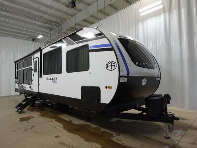 Experience the perfect blend of comfort and functionality with the 2025 Forest River Salem FSX 30CVIEW. This RV is designed to accommodate your adventurous spirit while providing a cozy retreat for up to four guests. The spacious interior features a queen bed and a versatile dinette that transforms into an additional sleeping area, ensuring restful nights after your daytime explorations. The clever layout maximizes space, offering ample storage with wardrobes and overhead compartments, making it easy to keep your living area tidy and organized. The Salem FSX 30CVIEW boasts a sleek, modern design with practical amenities. Enjoy the convenience of a well-equipped kitchen, complete with a microwave and a dual-swinging 12V refrigerator. The bathroom features a shower with a skylight, bringing in natural light to enhance your morning routine. Outside, the RV is equipped with an inviting kitchen setup, perfect for al fresco dining under the awning. With a robust powder-coated I-beam frame and thoughtful touches like removable underbelly panels, this RV is ready for any journey you embark on. For more details, visit your nearest General RV dealership.