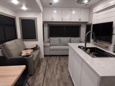 Step into the world of luxury and versatility with the 2025 Highland Ridge Open Range 3X 372MBH. This stunning fifth wheel is designed to cater to the needs of families and adventurers alike, offering ample space and comfort for up to eight guests. The spacious interior is highlighted by a king-size bed, convertible sleeping areas, and a cozy bunkhouse, ensuring everyone has a place to rest after a day of exploration. The rear living area, complete with a swing-out entertainment center and fireplace, provides the perfect setting for relaxation and entertainment, while the center kitchen features a full-size electric refrigerator and a four-burner cooktop for all your culinary adventures. The thoughtful design continues with practical amenities such as a washer/dryer, ensuring convenience on the road. The dual 28-foot powered retractable awnings extend your living space outdoors, perfect for enjoying the fresh air and scenic views. With a robust fresh water capacity of 75 gallons and generous gray and black water tanks, this RV is ready for extended journeys. The Open Range 3X 372MBH combines style, functionality, and innovation, making it the ideal choice for those seeking a home away from home. Discover this remarkable RV at your nearest General RV dealership and embark on your next adventure in style.