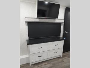 The 2025 Jayco North Point 365RKTS is a masterpiece of comfort and style, designed for those who crave adventure without sacrificing luxury. As you explore the interior, you'll find a thoughtfully designed rear kitchen that boasts a full-size residential refrigerator and a four-burner cooktop, perfect for crafting gourmet meals on the road. The center living area invites relaxation with its plush theater seating and a cozy 100” L-sofa, all beautifully arranged around a charming fireplace—ideal for those cozy nights in. Moving through the RV, the center bath offers convenience and privacy, featuring a sleek shower with a plastic/glass enclosure. The front bedroom is a sanctuary of rest, equipped with a king-sized bed and ample storage, ensuring you have all the comforts of home. With a length of over 40 feet, this RV offers spaciousness and elegance, complemented by two powered retractable awnings for outdoor enjoyment. The North Point 365RKTS is not just a vehicle; it's your luxurious retreat on wheels. For more details and to experience this model firsthand, visit your nearest General RV dealership.