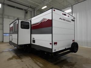 Imagine the perfect blend of comfort and style with the 2026 Prime Time Avenger 25MKO. This travel trailer is your ideal escape, offering a spacious and inviting layout that ensures every journey feels like a retreat. With its thoughtful design, the Avenger 25MKO features a center kitchen and living area that invites you to unwind and enjoy your surroundings. The theater seating provides a cozy spot to relax and watch your favorite shows on the 50" TV, while the full-size electric refrigerator and three-burner cooktop make meal prep a breeze. As you make your way to the front, you'll find a serene bedroom complete with a queen bed, promising restful nights after days of adventure. The rear bath offers convenience with its plastic/glass shower enclosure and practical storage solutions. Outside, the powered retractable awning extends your living space, providing shade and comfort for outdoor relaxation. With a length of just under 30 feet and a manageable dry weight, the Avenger 25MKO is perfect for those seeking both mobility and luxury in their travels. For more information or to experience this RV firsthand, visit your nearest General RV dealership.