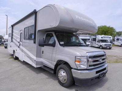 **Thor Motor Coach Pasadena SE Class C gas motorhome SE31 highlights: - Full-Wall Slide - RV Queen Bed - Cab-Over Bunk - Dream Dinette You'll love the amount of space in this coach with a full-wall slide! You can relax on the theater seating after traveling all day, then make dinner on the three burner gas cooktop. The Dream dinette provides a place to dine together, or you can take your plate outdoors to eat under the 16' power awning. The mid-coach full bath is right across from the closet and pantry so you can easily get dressed each day, and the rear private bedroom with an RV queen bed is sure to make you feel at home. With any Pasadena SE Class C gas motorhome by Thor Motor Coach, you will find convenient amenities, a modern interior, and a reliable Ford E-Series chassis. There is a one-piece fiberglass front cap, and premium one-piece roofing for added strength. Residential vinyl flooring will be easy to keep clean, and you'll love the LED lighting, pressed laminate countertops throughout, and full-extensions ball-bearing drawer guides. These motorhomes also include a 4.0 kW gas generator and a 30-amp shoreline power cord to keep you going, along with a tankless water heater to ensure your comfort!