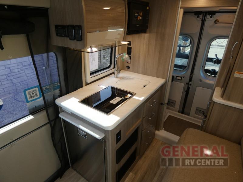 Experience the open road like never before with the 2023 Thor Motor Coach Scope 18M. This compact yet versatile RV is designed for those who crave adventure without sacrificing comfort. At just under 18 feet, the Scope 18M is perfect for navigating both city streets and scenic byways. The interior is thoughtfully arranged to maximize space and functionality. The front living area features swivel chairs, allowing you to relax and enjoy the view or entertain guests. The center kitchen is equipped with a two-burner cooktop and a compact refrigerator, making meal prep a breeze. The removable table offers flexibility for dining or workspace needs. In the rear, you'll find a cleverly designed wet bath, providing all the essentials in a compact space. The pull-out bed comfortably sleeps two, transforming the living area into a cozy sleeping space at night. With ample storage options throughout, you can bring along all your travel essentials. The 10-foot powered retractable awning extends your living space to the outdoors, perfect for enjoying meals or relaxing under the stars. Powered by a robust Pentastar V6 engine on a ProMaster 3500 chassis, this RV offers both power and reliability. Whether you're embarking on a cross-country journey or a weekend getaway, the Thor Scope 18M is your perfect travel companion. For more details and to see this model in person, visit your nearest General RV dealership.