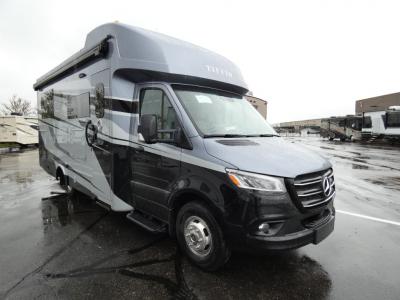 Experience the perfect blend of luxury and functionality with the 2018 Tiffin Wayfarer 24 QW. This exquisite motorhome, built on the reliable Mercedes-Benz Sprinter 3500 chassis, offers a powerful yet smooth ride with its V6 engine. Measuring just over 25 feet, it provides a compact yet spacious environment, ideal for both short getaways and extended adventures. The thoughtfully designed floorplan features a rear bedroom with a comfortable queen bed, ensuring restful nights under the stars. The front living area, complete with a convertible seating space and a cozy booth dinette, is perfect for dining and relaxation. The center kitchen is equipped with a two-burner cooktop and a mid-size refrigerator that runs on both electric and propane, making meal preparation a breeze. The bathroom, conveniently located in the center, offers a practical shower with a plastic/glass door for easy maintenance. With a fresh water capacity of 32 gallons and ample storage throughout, this RV is ready to support your journey in comfort. The 14-foot powered retractable awning extends your living space to the outdoors, creating a perfect spot for enjoying those beautiful sunsets. For more details or to experience this RV in person, visit your nearest General RV Dealership.